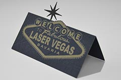 Durch die variable Intensität des Lasers können auch empfindliche und leicht entzündliche Materialien wie Papier und Karton bearbeitet werden. Der Vorteil zur klassischen Gravur besteht hierbei in einer besonders scharfen und detailgenauen Kennzeichnung sowie die materialschonende Bearbeitung ohne mechanische Belastung. Alle Gravuren und Markierungen sind wasser-, wisch- sowie kratzfest und zeichnen sich durch hohe Haltbarkeit aus. Wir fertigen vom Einzelstück bis hin zur Serienproduktion für Sie.